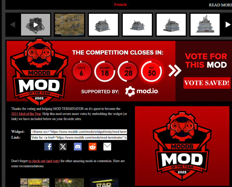 Ici vous trouverez tous les mods de War Of Generals sous Generals/ Heure HMod Rome, Star Wars , Stargate, Terminator ...
